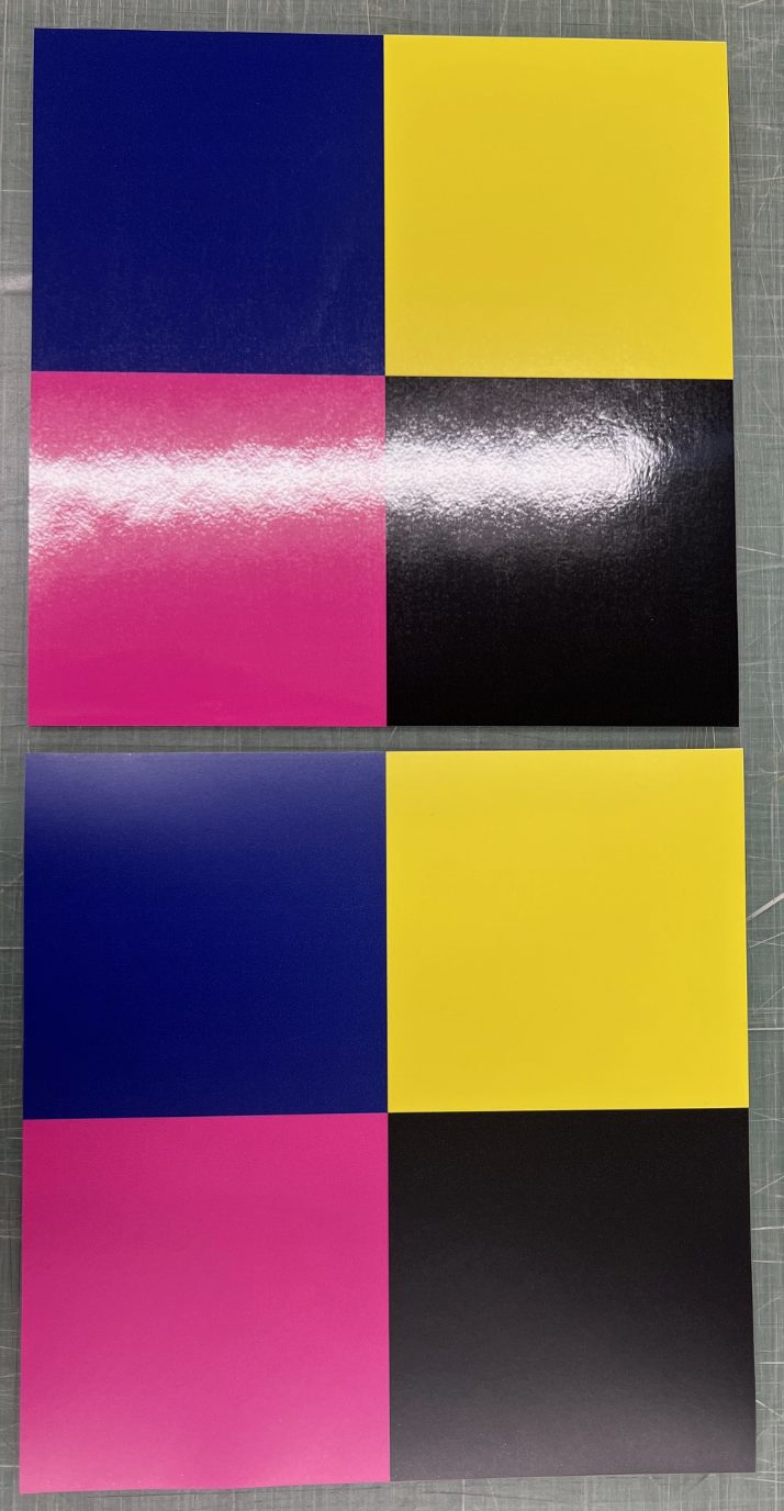 グロスラミネートより発色性が落ちてしまうため、色味が少し変わる恐れがある